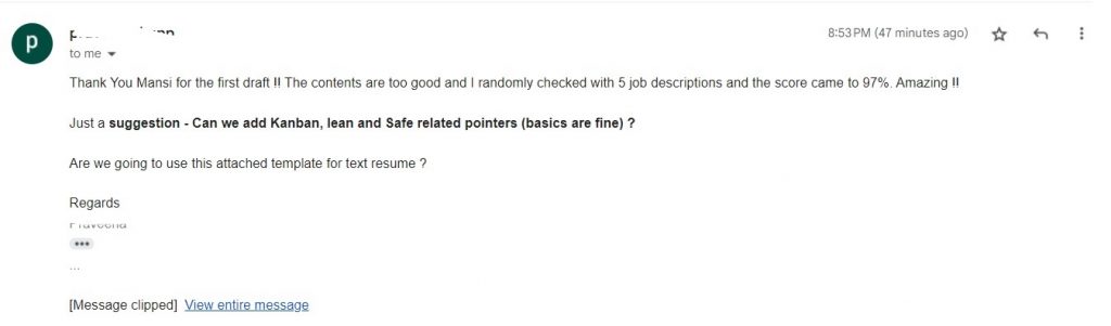 A client shared that they had secured a job opportunity through applications supported by the service and had decided to accept the offer. This highlights how a well-crafted resume contributes to momentum in a job search. While it may not be the only factor, it plays a crucial role in ensuring that opportunities are not missed due to poor presentation.